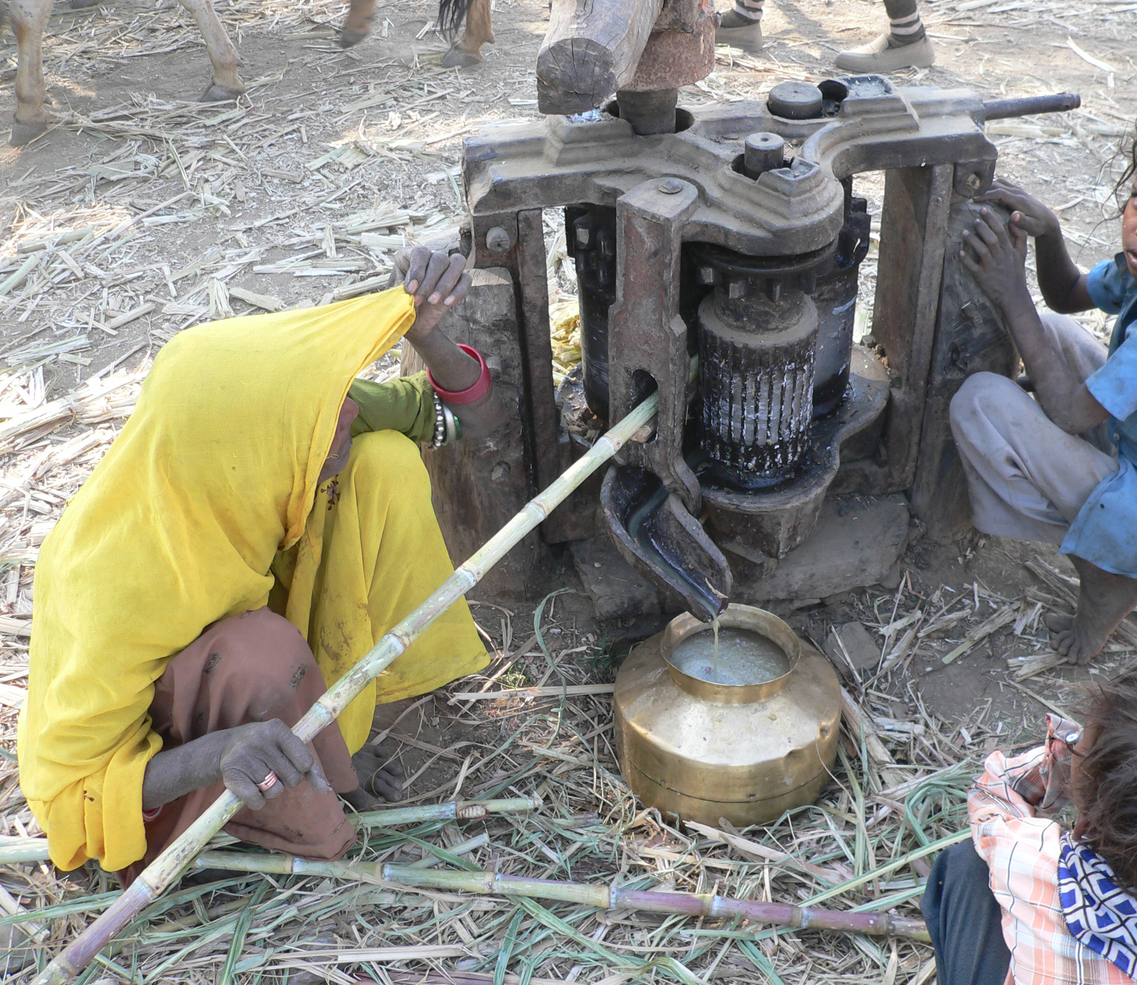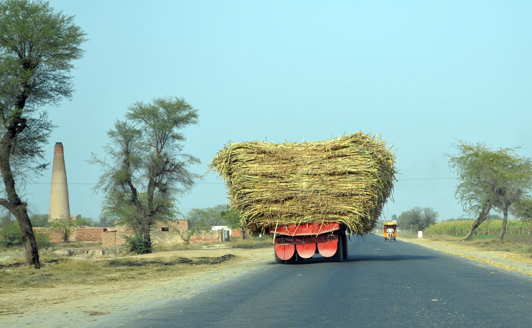 Puis vient l’heure de la récolte, et les campagnes du pays entier semblent entrer en ébullition : les champs sont emplis de familles entières de faucheurs, travaillant sans relâche, et on croise sur la route d’étranges camions à la largeur excessive, impossible à dépasser sur les petites routes… Et puis surtout, partout, on voit les gens un bâton de canne à sucre à la main qui, avec ces gestes si caractéristiques, arrachent l’écorce de leurs dents avant d’aspirer le jus qu’elle contient… Sur les routes, on voit les enfants courir derrière les camions pour arracher au vol un bâton à sucer, et le jus de canne à sucre, « ganne ka juice » est vendu sur les bas côtés, et dans les bazaars…