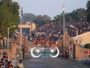 Les guerres se sont succédées, mais de nos jours, c’est au cricket que s’affrontent les deux pays, et aussi quotidiennement lors de la cérémonie de retraite de la garde de « Wagah Border », la frontière entre l’Inde et le Pakistan, entre Lahore et Amritsar, au coeur de ce Punjab coupé en deux une nuit d’août 1947. Les gens viennent par centaines s’asseoir dans les gradins de part et autre de la frontière, pour scander avec ferveur : Pakistan Zindabad ! Vive le Pakistan ! du côté pakistanais, et Jai Hind ! Vive l’Inde ! du côté indien, rivalisant de volume sonore et de drapeaux brandis, alors que les gardes se défient à coup de chorégraphies militaires et de regards noirs.