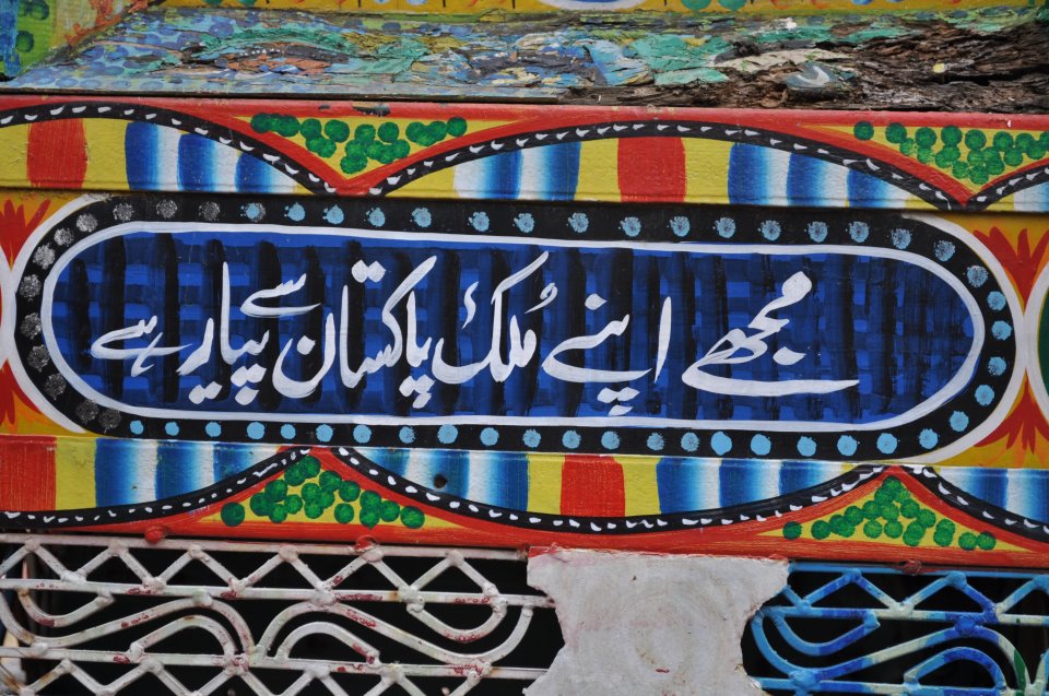Quand on marche dans les rues et sur les bords des routes pakistanaises, on a cette impression d’un pays noyé dans une seule couleur : celle de la terre. Elle se soulève au passage des mobylettes et des voitures, recouvrant tout. Les murs des maisons en sont faits où enduits, et les vêtements des hommes sont faits de ces mêmes tons. Tout est beige, marron, uniforme. Puis ils apparaissent, tornade de couleurs et de bruits en tous genres, chacun unique au monde : les trucks.