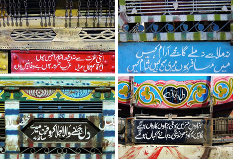 Les motifs de leurs décorations sont infinis, au gré de l’inspiration de l’artiste : allant des reproductions des mosquées sacrées à celles des actrices de bollywood, ou encore se transformant en hommage vibrant au Pakistan ou à la ville d’origine de l’artiste, voir à son clan.
