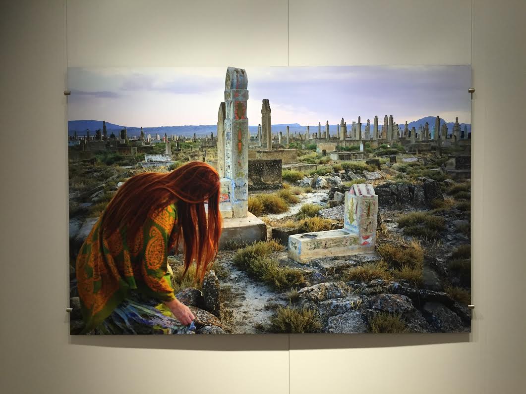 Cette photo aussi d’une femme artiste dont on ne voit que la chevelure rousse, assise dans un cimetière, magnifique.