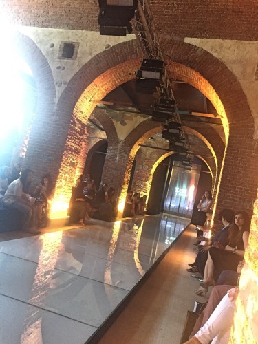 Les alcôves de l’ancien entrepôt des Magazzini Devalle étaient bondées, et en coulisse, c’était l’aboutissement de semaines de travail qui prenaient forme alors que les mannequins s’habillaient et que nous faisions les dernières retouches sur elles avant qu’elles ne s’élancent sur scène, comme pour un ultime spectacle. Il faisait extrêmement chaud ce jour-là à Turin, comme si le vent s’était retenu en même temps que notre souffle.